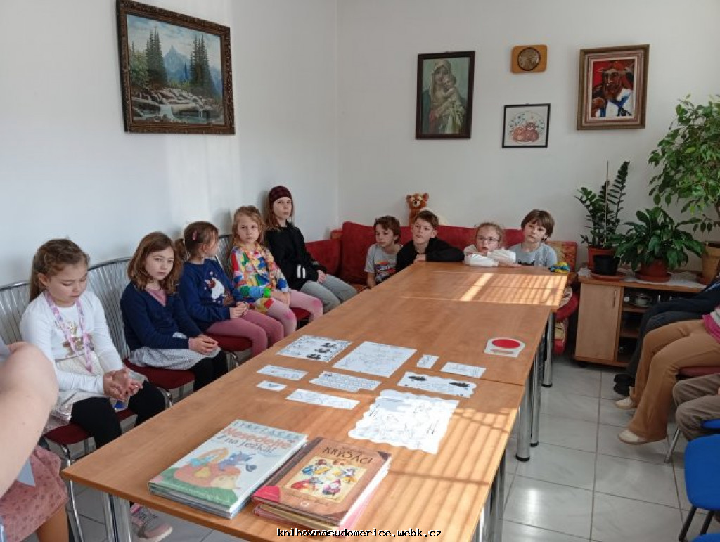 V pátek 13.3. navštívily naši knihovnu děti ze školní družiny. Tématem besedy byl český básník pro děti a mládež Jiří Žáček a jeho tvorba, který koncem minulého roku oslavil významné životní jubileum – 80. narozeniny. Děti jsem seznámila s jeho životem a knihami, které pro ně napsal, z nichž některé jsou i ve fondu knihovny. Právě z knihy Nesedejte na ježka jsem vybrala různé hádanky a děti měly za úkol uhádnout, co myslím. Pomáhaly jim v tom také připravené obrázky, které byly odpověďmi na všechny hádanky. Poté následovala tradiční prohlídka knihovny a jejího fondu.
